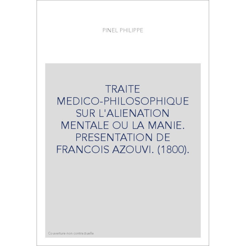 TRAITE MEDICO-PHILOSOPHIQUE SUR L'ALIENATION MENTALE OU LA MANIE. PRESENTATION DE FRANCOIS AZOUVI. (1800).