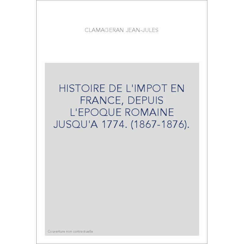 HISTOIRE DE L'IMPOT EN FRANCE, DEPUIS L'EPOQUE ROMAINE JUSQU'A 1774. (1867-1876).