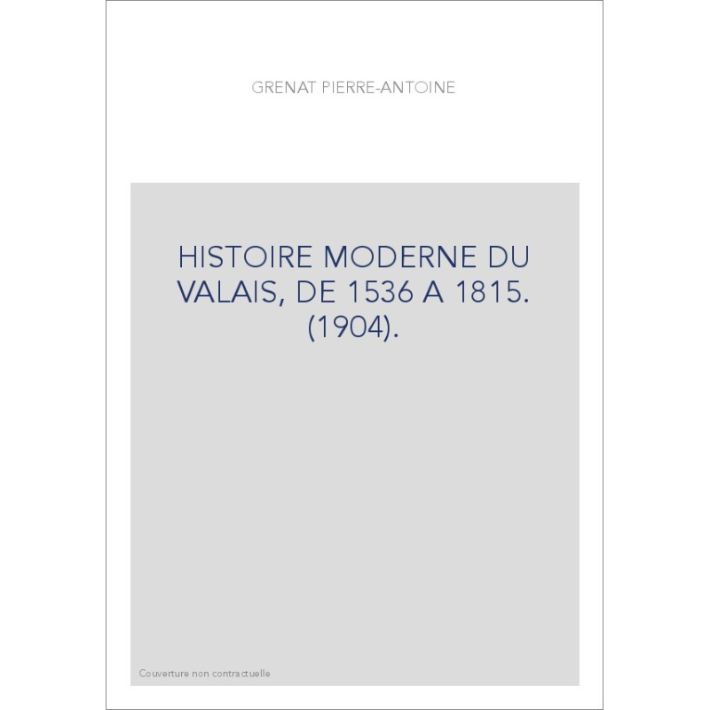 HISTOIRE MODERNE DU VALAIS, DE 1536 A 1815. (1904).