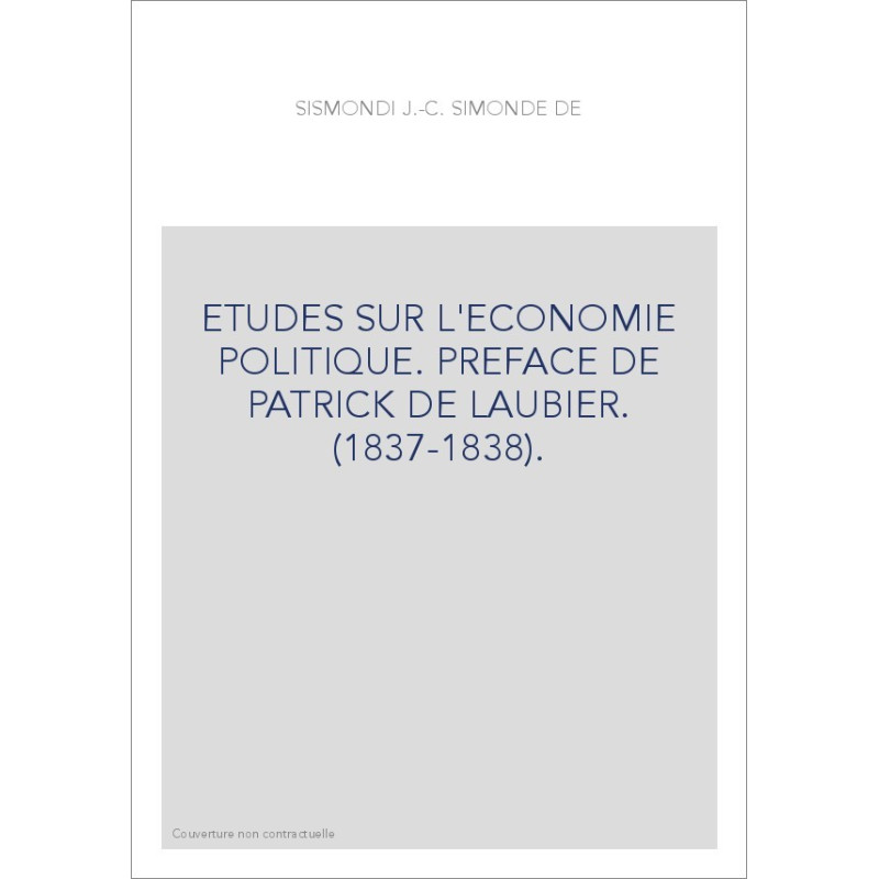 ETUDES SUR L'ECONOMIE POLITIQUE. PREFACE DE PATRICK DE LAUBIER. (1837-1838).