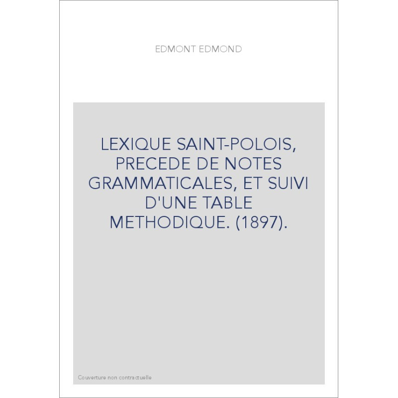 LEXIQUE SAINT-POLOIS, PRECEDE DE NOTES GRAMMATICALES, ET SUIVI D'UNE TABLE METHODIQUE. (1897).