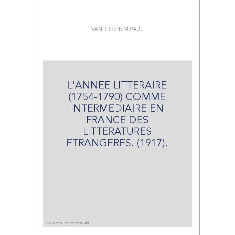 L'ANNEE LITTERAIRE (1754-1790) COMME INTERMEDIAIRE EN FRANCE DES LITTERATURES ETRANGERES. (1917).