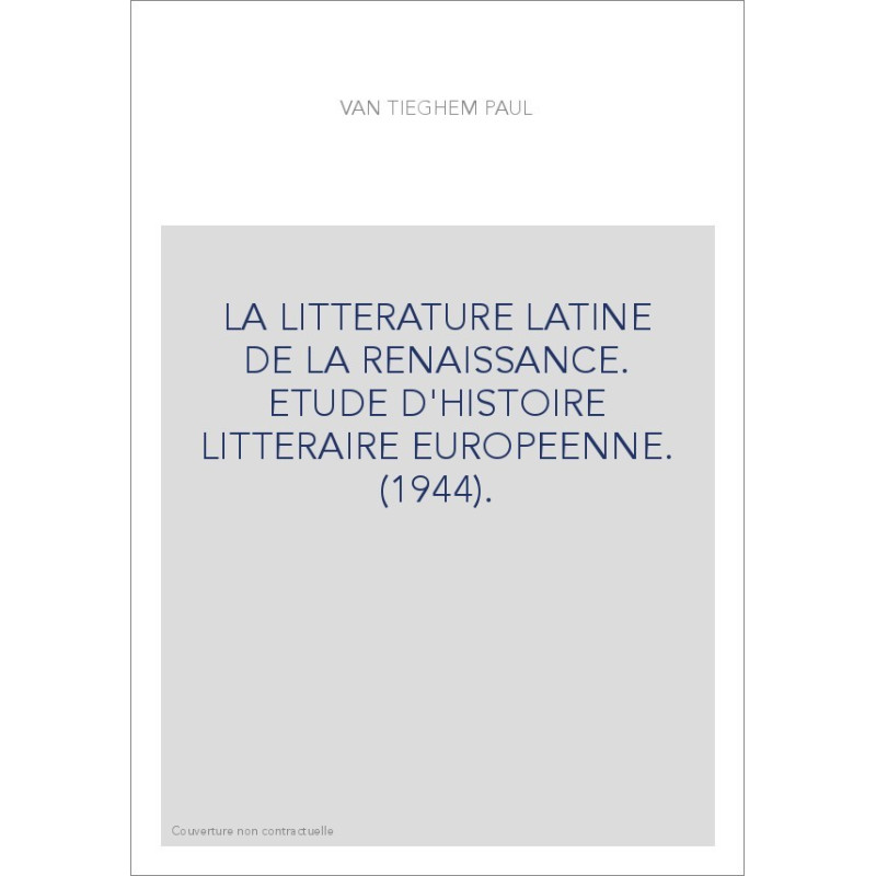 LA LITTERATURE LATINE DE LA RENAISSANCE. ETUDE D'HISTOIRE LITTERAIRE EUROPEENNE. (1944).