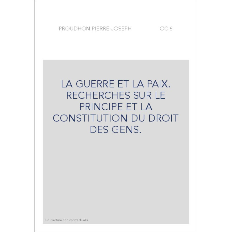 LA GUERRE ET LA PAIX. RECHERCHES SUR LE PRINCIPE ET LA CONSTITUTION DU DROIT DES GENS.