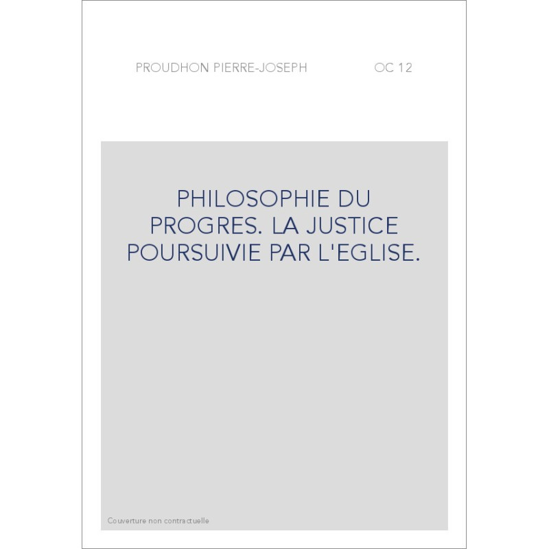 PHILOSOPHIE DU PROGRES. LA JUSTICE POURSUIVIE PAR L'EGLISE.