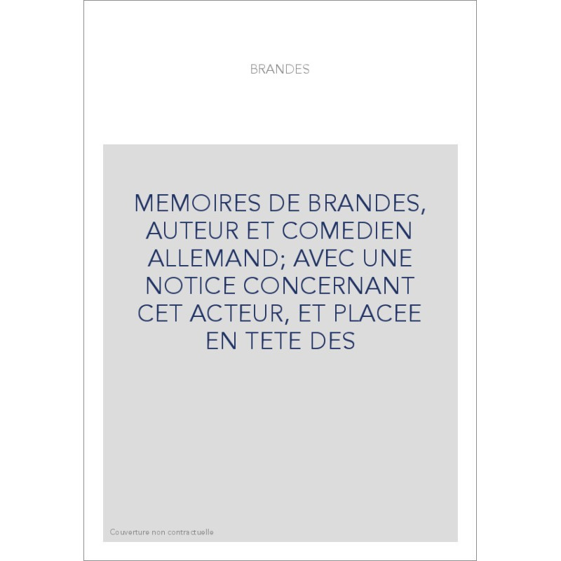 MEMOIRES DE BRANDES, AUTEUR ET COMEDIEN ALLEMAND AVEC UNE NOTICE CONCERNANT CET ACTEUR, ET PLACEE EN TETE DES