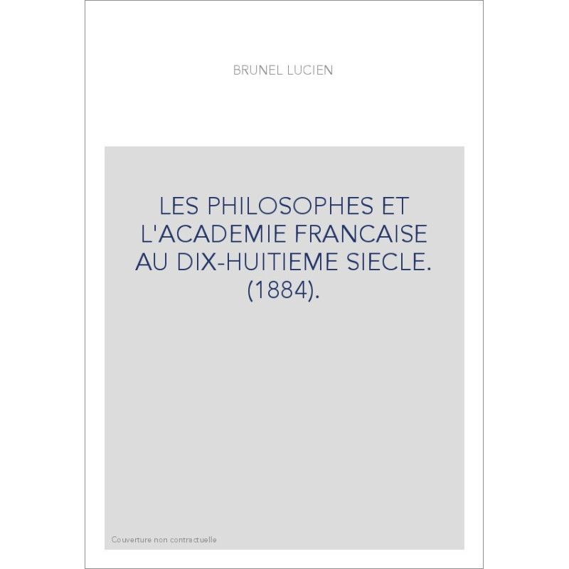 LES PHILOSOPHES ET L'ACADEMIE FRANCAISE AU DIX-HUITIEME SIECLE. (1884).