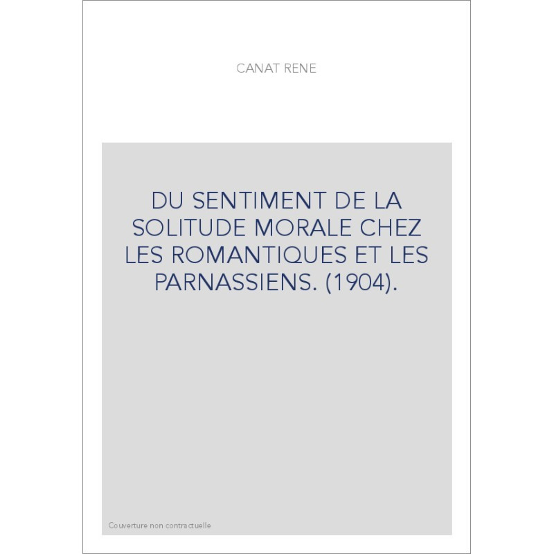 DU SENTIMENT DE LA SOLITUDE MORALE CHEZ LES ROMANTIQUES ET LES PARNASSIENS. (1904).