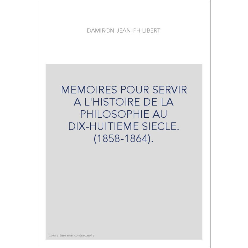 MEMOIRES POUR SERVIR A L'HISTOIRE DE LA PHILOSOPHIE AU DIX-HUITIEME SIECLE. (1858-1864).