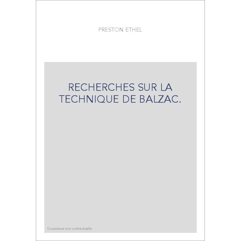 RECHERCHES SUR LA TECHNIQUE DE BALZAC.
