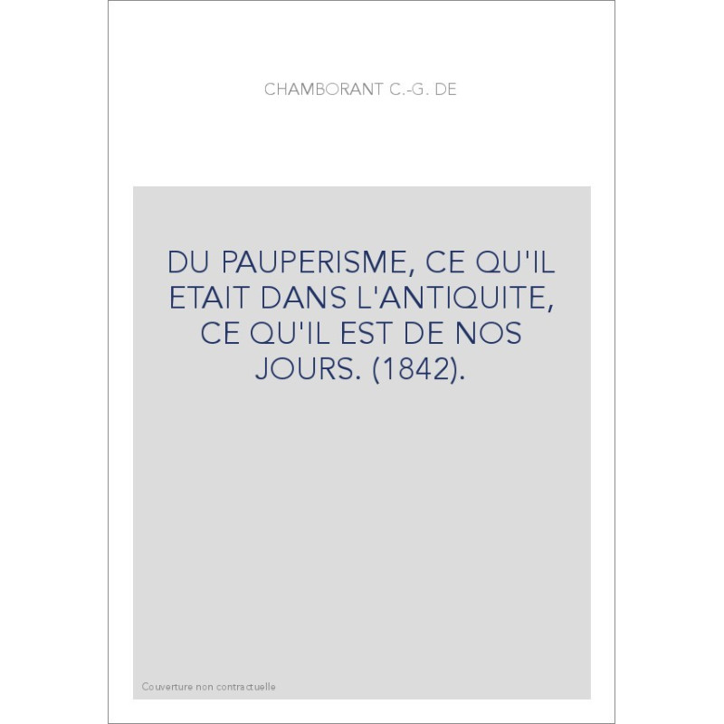 DU PAUPERISME, CE QU'IL ETAIT DANS L'ANTIQUITE, CE QU'IL EST DE NOS JOURS. (1842).