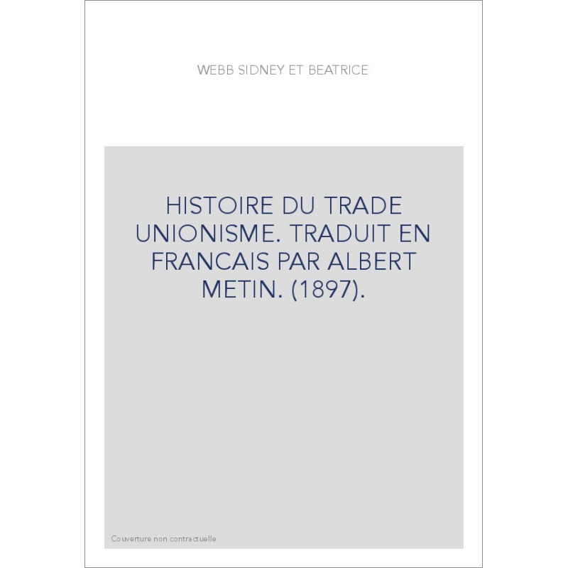 HISTOIRE DU TRADE UNIONISME. TRADUIT EN FRANCAIS PAR ALBERT METIN. (1897).