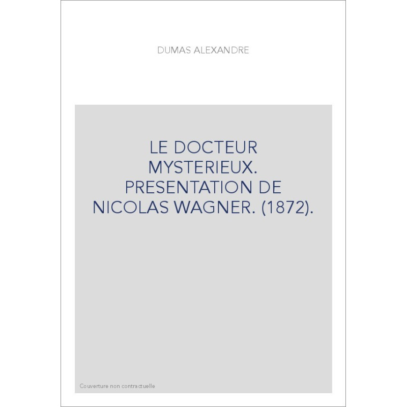 DOCTEUR MYSTERIEUX. PRESENTATION DE NICOLAS WAGNER (1872).