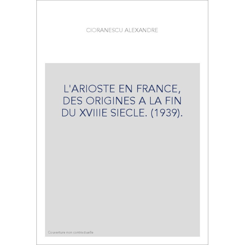 L'ARIOSTE EN FRANCE, DES ORIGINES A LA FIN DU XVIIIE SIECLE. (1939).