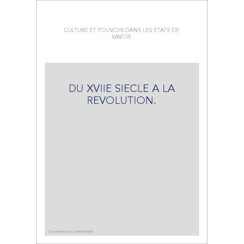 CULTURE ET POUVOIR DANS LES ETATS DE SAVOIE DU XVIIE SIECLE A LA REVOLUTION.