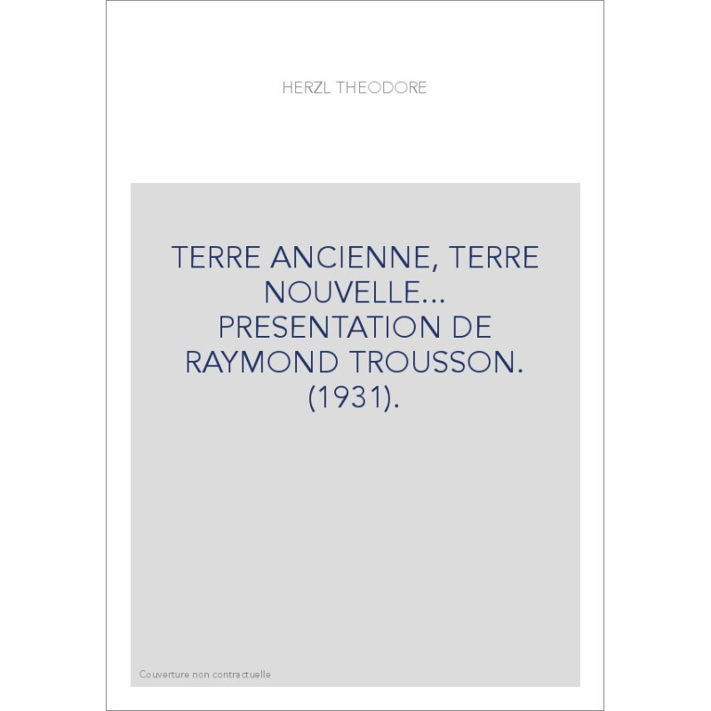 TERRE ANCIENNE, TERRE NOUVELLE... PRESENTATION DE RAYMOND TROUSSON. (1931).