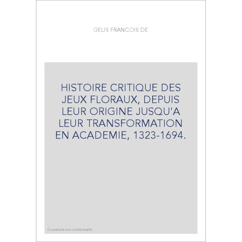HISTOIRE CRITIQUE DES JEUX FLORAUX, DEPUIS LEUR ORIGINE JUSQU'A LEUR TRANSFORMATION EN ACADEMIE, 1323-1694.