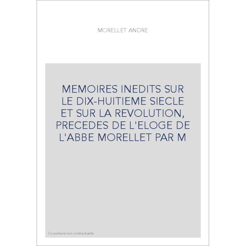 MEMOIRES INEDITS SUR LE DIX-HUITIEME SIECLE ET SUR LA REVOLUTION, PRECEDES DE L'ELOGE DE L'ABBE MORELLET PAR M