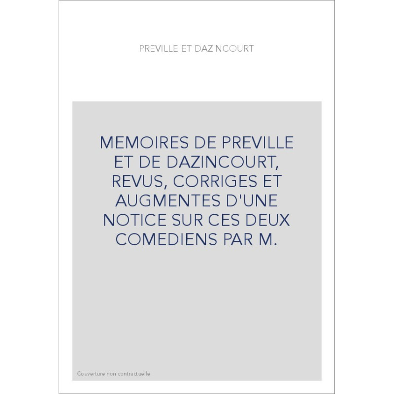 MEMOIRES DE PREVILLE ET DE DAZINCOURT, REVUS, CORRIGES ET AUGMENTES D'UNE NOTICE SUR CES DEUX COMEDIENS PAR M.