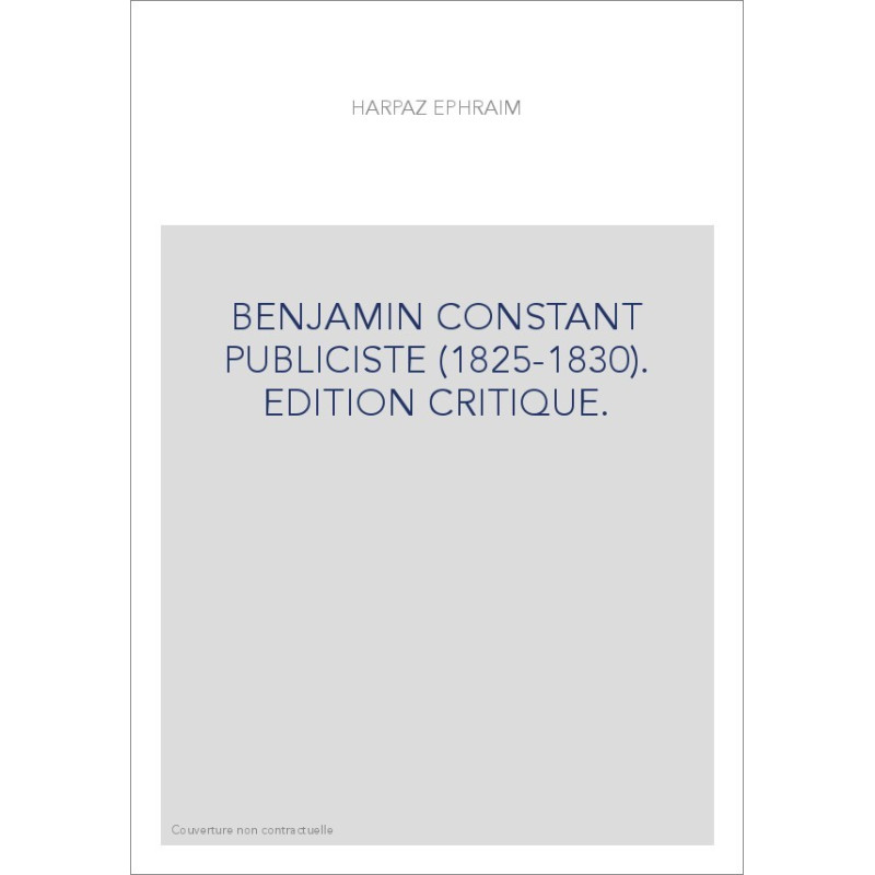 BENJAMIN CONSTANT PUBLICISTE (1825-1830). EDITION CRITIQUE.