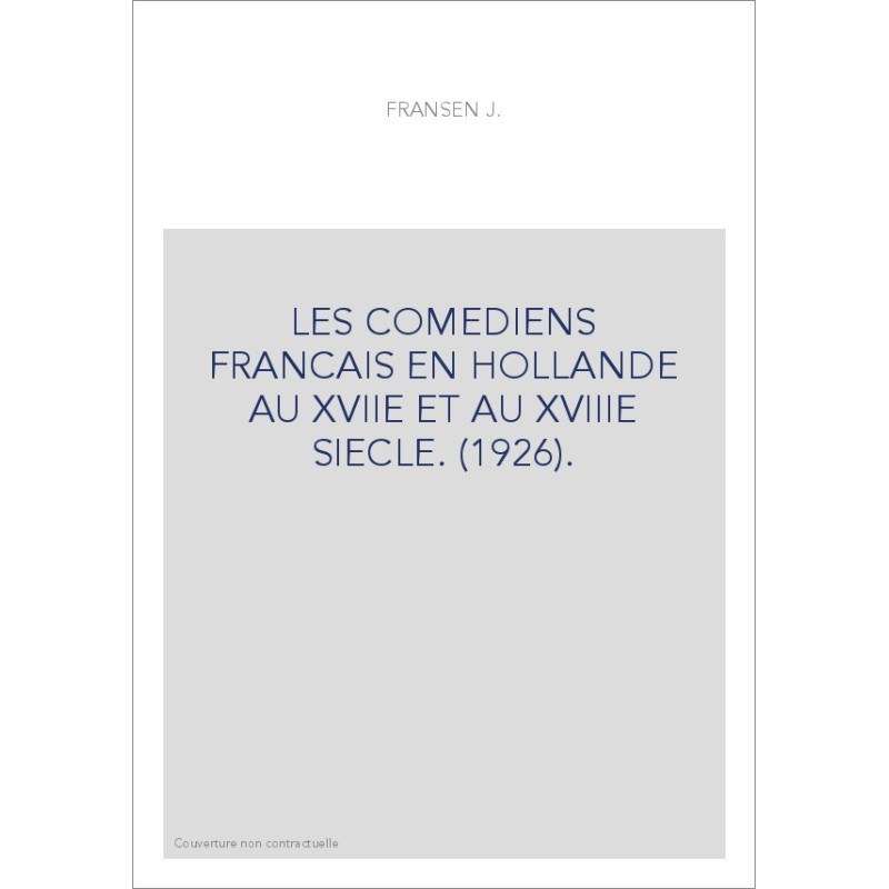 LES COMEDIENS FRANCAIS EN HOLLANDE AU XVIIE ET AU XVIIIE SIECLE. (1926).