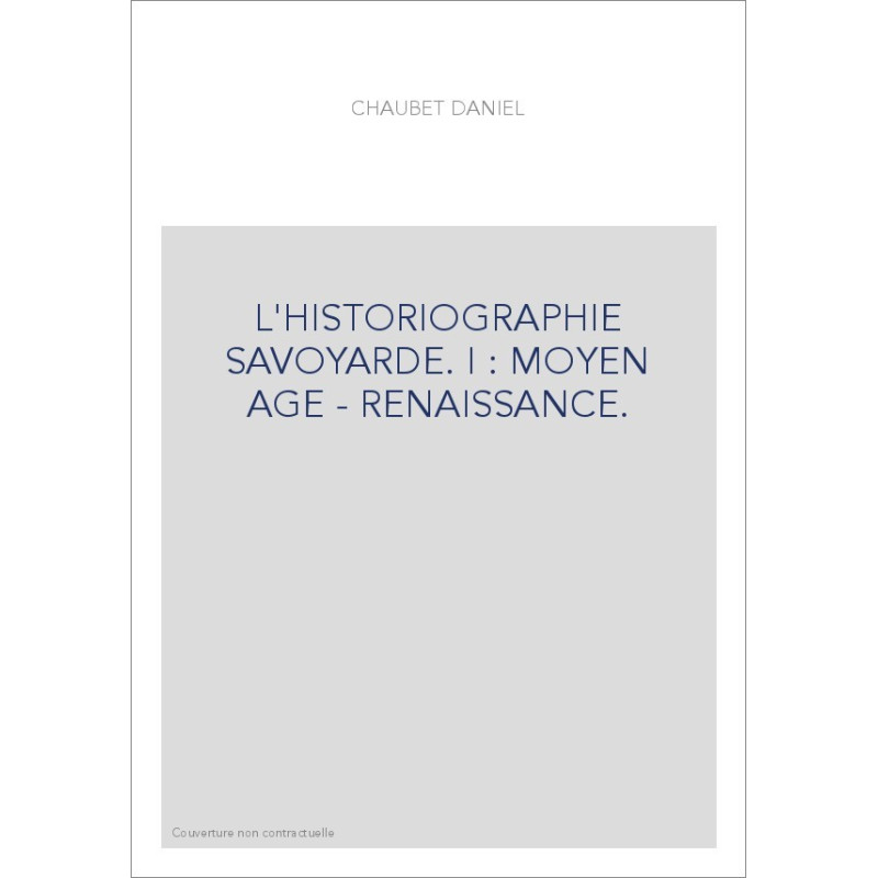 L'HISTORIOGRAPHIE SAVOYARDE. I : MOYEN AGE - RENAISSANCE. View larger
