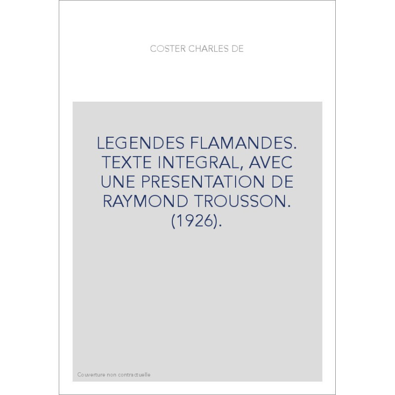 LEGENDES FLAMANDES. TEXTE INTEGRAL, AVEC UNE PRESENTATION DE RAYMOND TROUSSON. (1926).