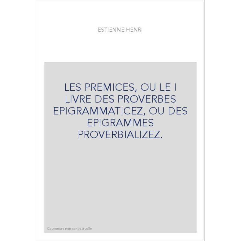 LES PREMICES, OU LE I LIVRE DES PROVERBES EPIGRAMMATICEZ, OU DES EPIGRAMMES PROVERBIALIZEZ.