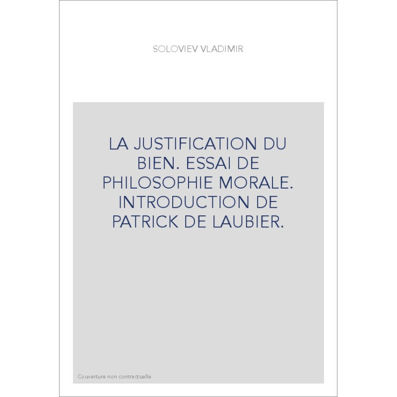 LA JUSTIFICATION DU BIEN. ESSAI DE PHILOSOPHIE MORALE. INTRODUCTION DE PATRICK DE LAUBIER.