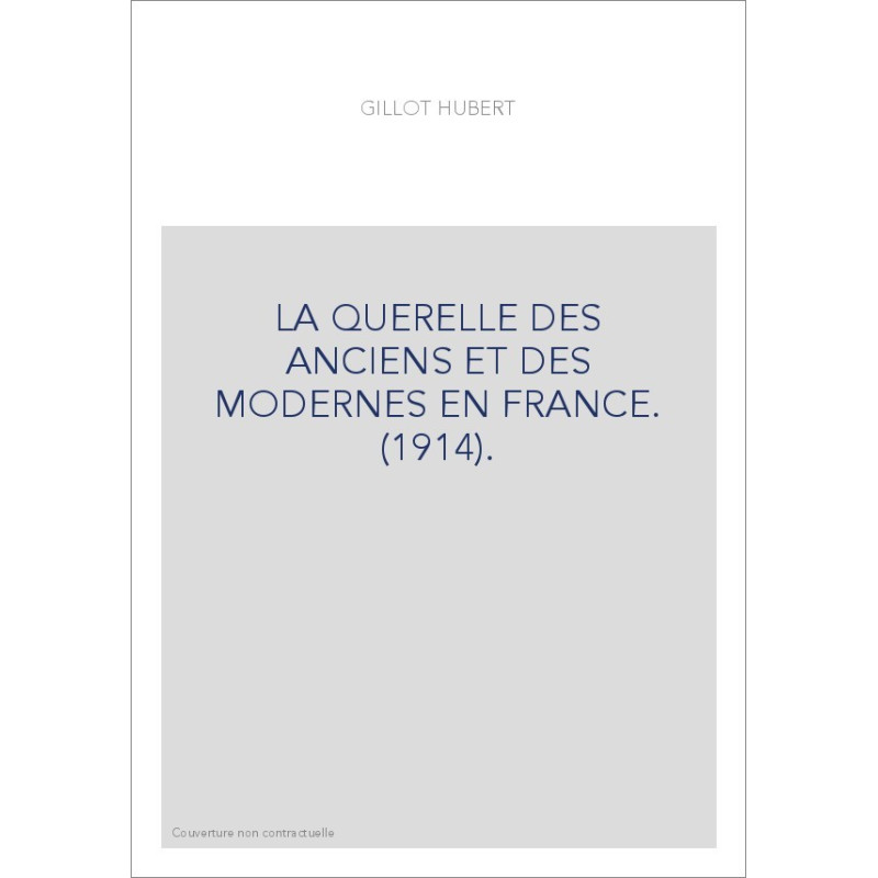 LA QUERELLE DES ANCIENS ET DES MODERNES EN FRANCE. (1914). View larger