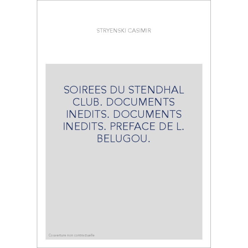 SOIREES DU STENDHAL CLUB. DOCUMENTS INEDITS. DOCUMENTS INEDITS. PREFACE DE L. BELUGOU.