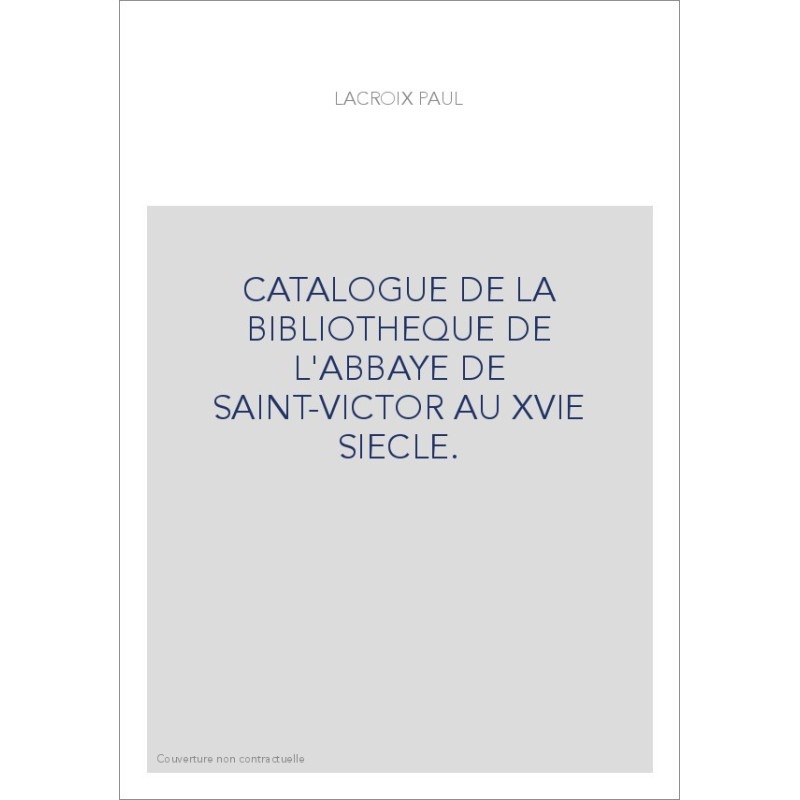 CATALOGUE DE LA BIBLIOTHEQUE DE L'ABBAYE DE SAINT-VICTOR AU XVIE SIECLE.