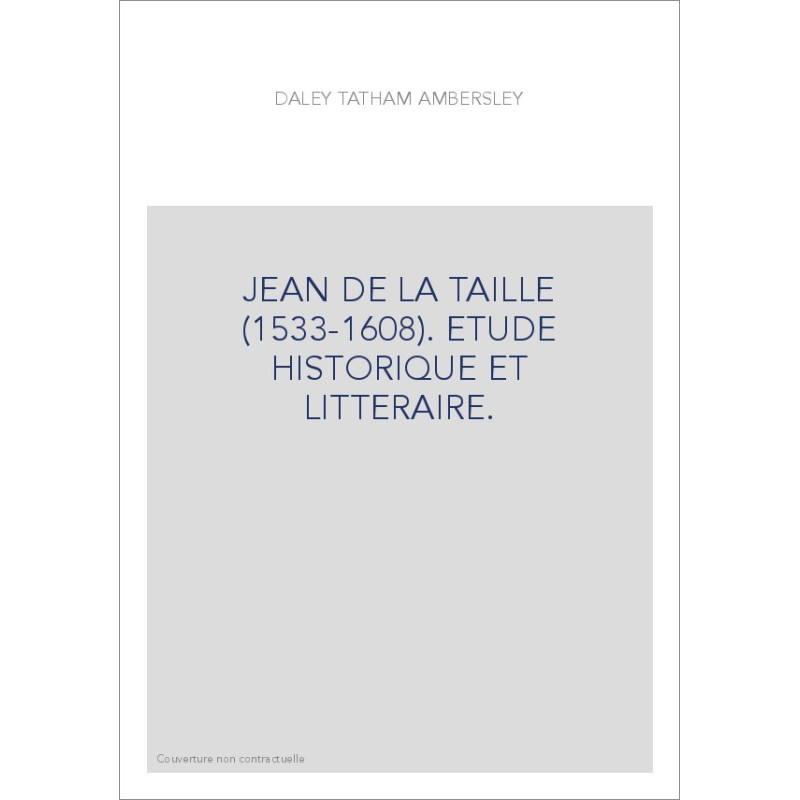 JEAN DE LA TAILLE (1533-1608). ETUDE HISTORIQUE ET LITTERAIRE.
