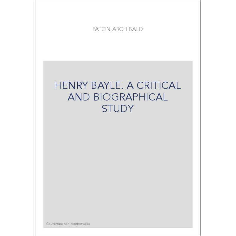 HENRY BAYLE. A CRITICAL AND BIOGRAPHICAL STUDY