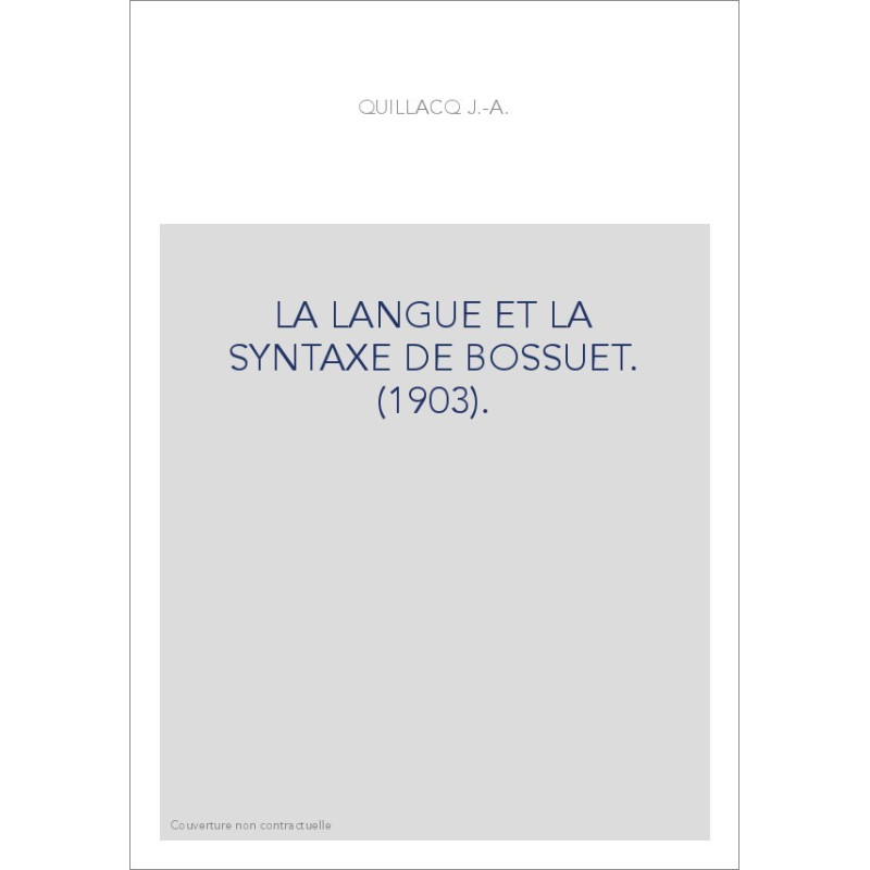 LA LANGUE ET LA SYNTAXE DE BOSSUET. (1903). View larger