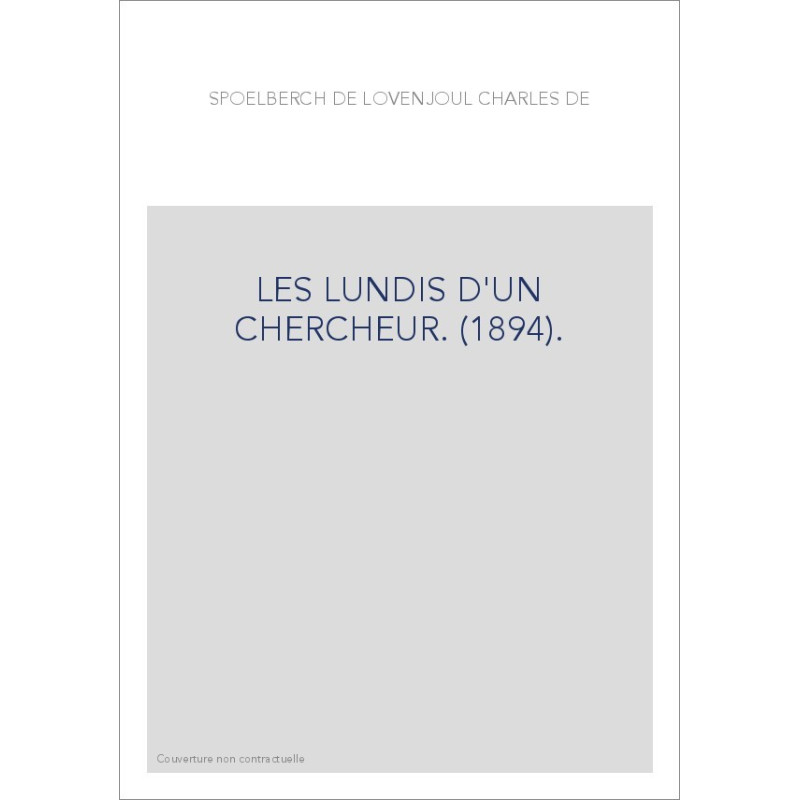 LES LUNDIS D'UN CHERCHEUR. (1894).