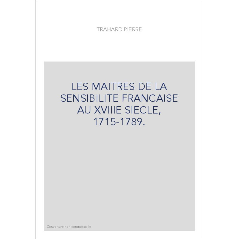LES MAITRES DE LA SENSIBILITE FRANCAISE AU XVIIIE SIECLE, 1715-1789.