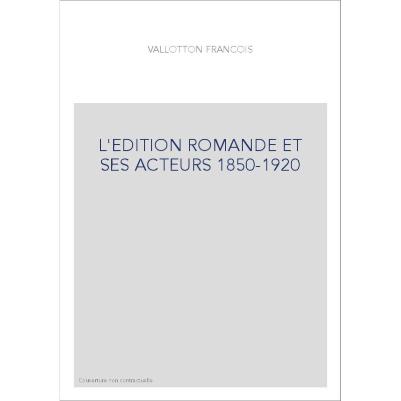 L'EDITION ROMANDE ET SES ACTEURS 1850-1920