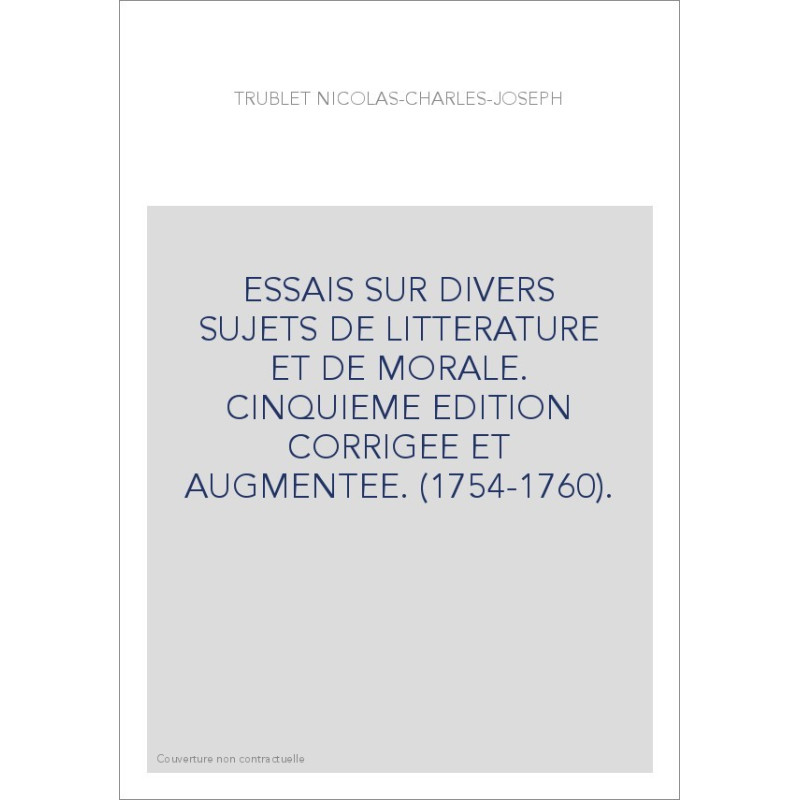 ESSAIS SUR DIVERS SUJETS DE LITTERATURE ET DE MORALE. CINQUIEME EDITION CORRIGEE ET AUGMENTEE. (1754-1760).