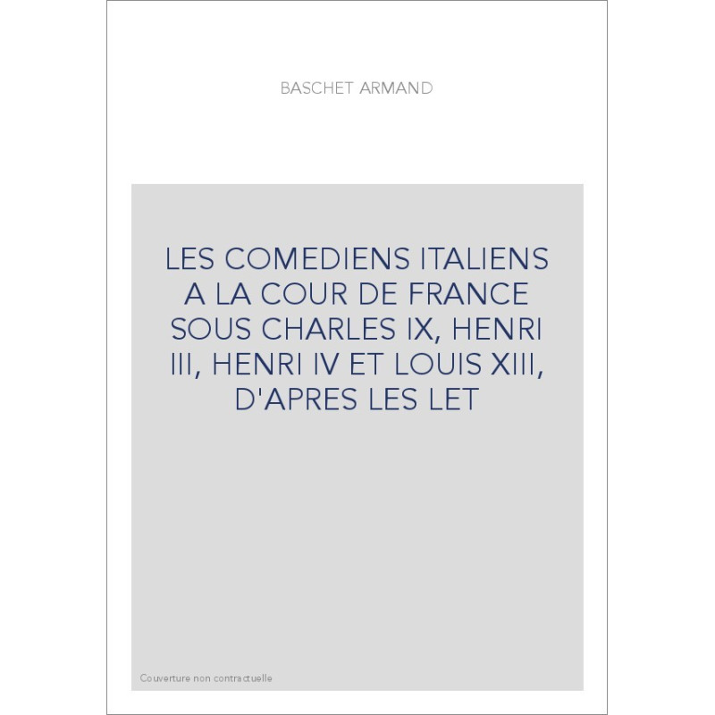 LES COMEDIENS ITALIENS A LA COUR DE FRANCE SOUS CHARLES IX, HENRI III, HENRI IV ET LOUIS XIII, D'APRES LES LET