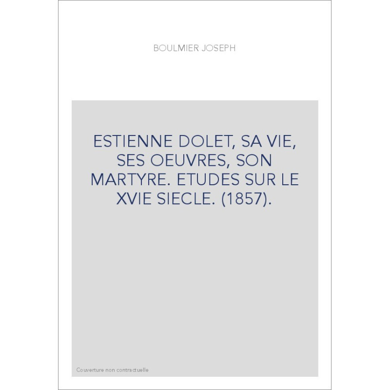 ESTIENNE DOLET, SA VIE, SES OEUVRES, SON MARTYRE. ETUDES SUR LE XVIE SIECLE. (1857).