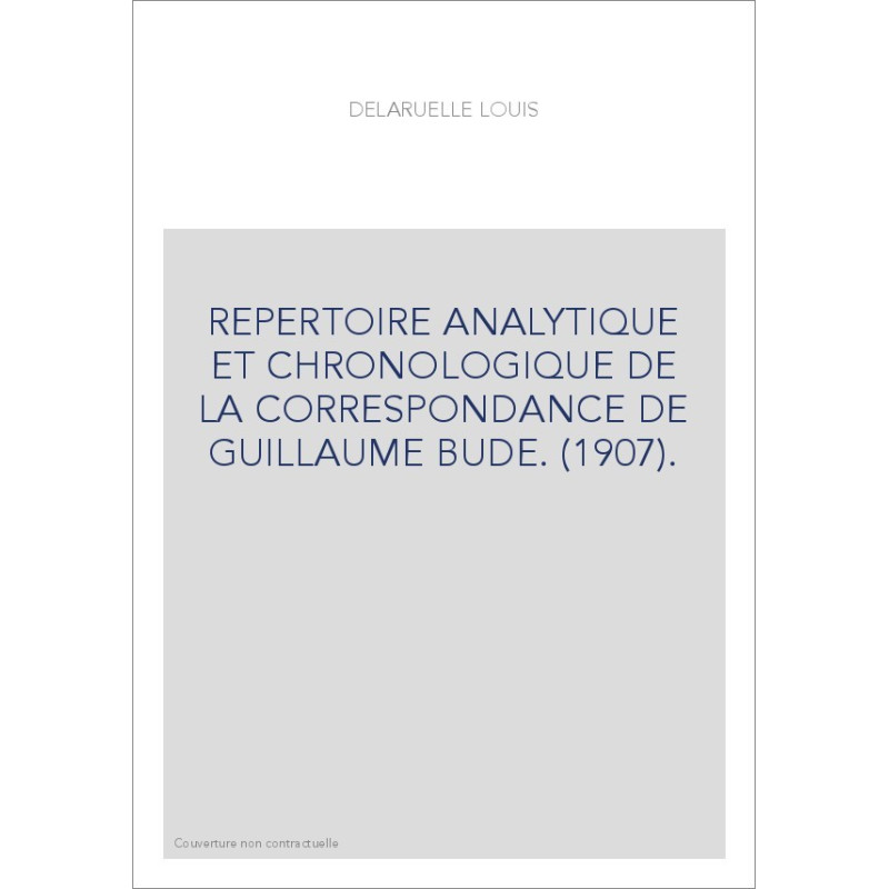 REPERTOIRE ANALYTIQUE ET CHRONOLOGIQUE DE LA CORRESPONDANCE DE GUILLAUME BUDE. (1907).