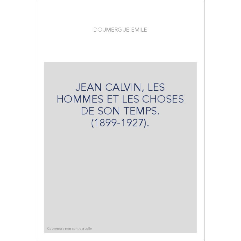 JEAN CALVIN, LES HOMMES ET LES CHOSES DE SON TEMPS. (1899-1927).