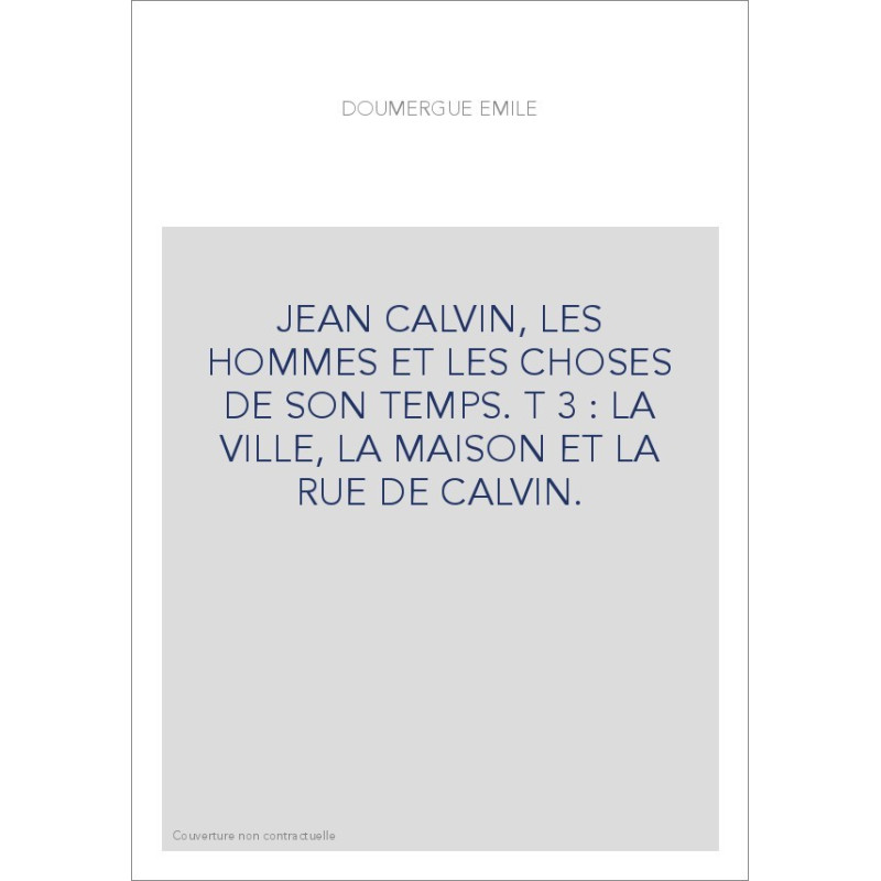 JEAN CALVIN, LES HOMMES ET LES CHOSES DE SON TEMPS. T 3 : LA VILLE, LA MAISON ET LA RUE DE CALVIN.