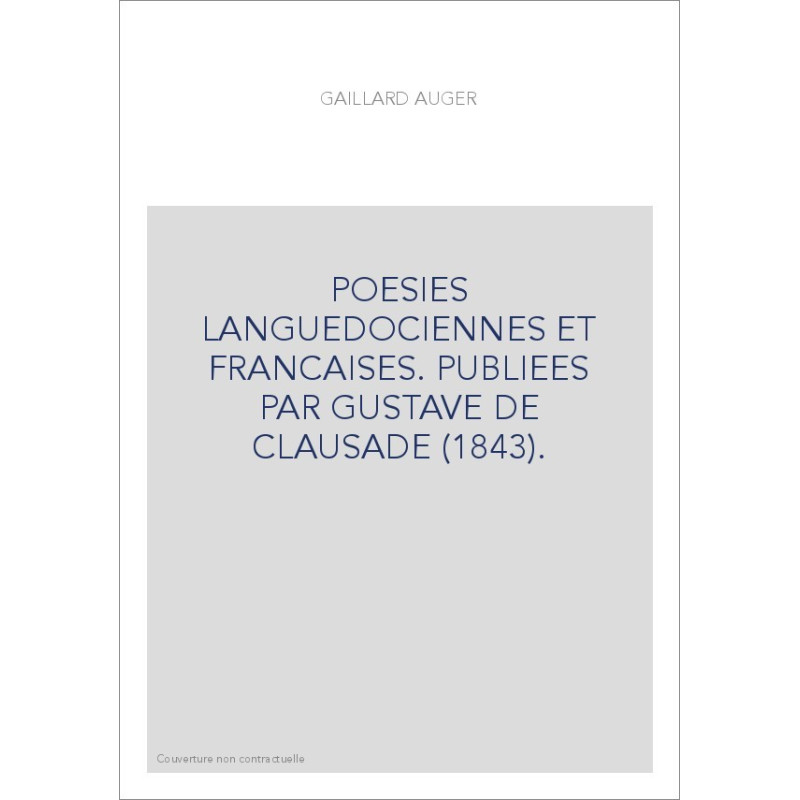 POESIES LANGUEDOCIENNES ET FRANCAISES. PUBLIEES PAR GUSTAVE DE CLAUSADE (1843).