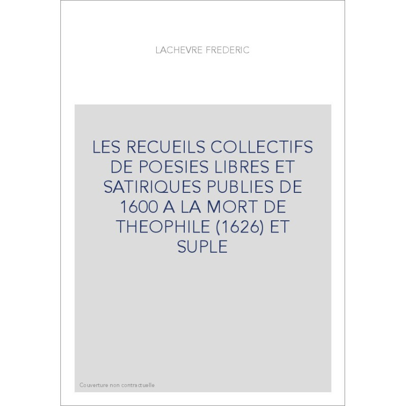 LES RECUEILS COLLECTIFS DE POESIES LIBRES ET SATIRIQUES PUBLIES DE 1600 A LA MORT DE THEOPHILE
