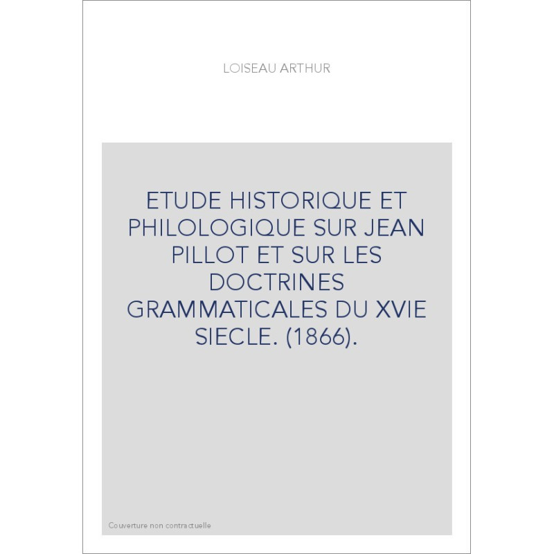 ETUDE HISTORIQUE ET PHILOLOGIQUE SUR JEAN PILLOT ET SUR LES DOCTRINES GRAMMATICALES DU XVIE SIECLE. (1866).