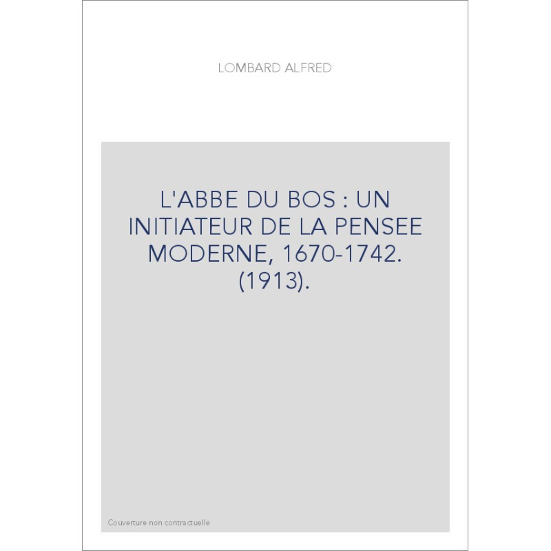 L'ABBE DU BOS : UN INITIATEUR DE LA PENSEE MODERNE, 1670-1742. (1913). View larger