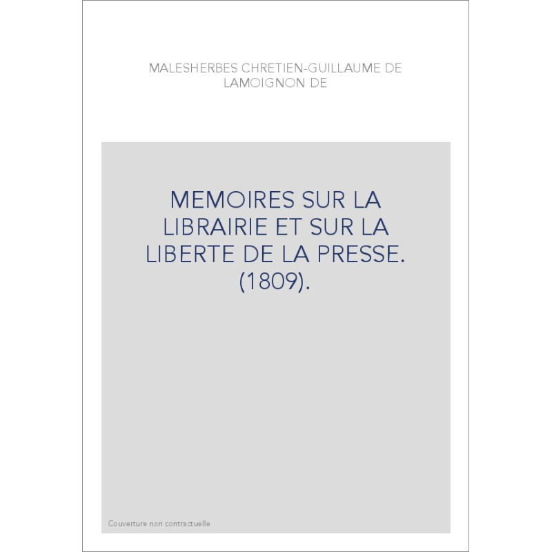 MEMOIRES SUR LA LIBRAIRIE ET SUR LA LIBERTE DE LA PRESSE. (1809).