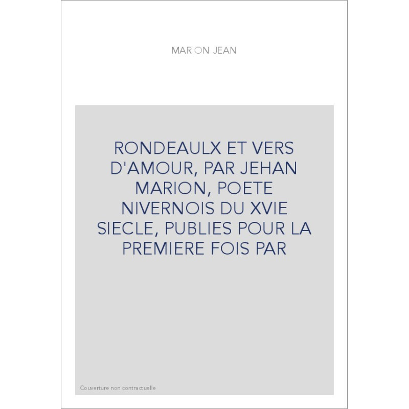 RONDEAULX ET VERS D'AMOUR, PAR JEHAN MARION, POETE NIVERNOIS DU XVIE SIECLE, PUBLIES POUR LA PREMIERE FOIS PAR